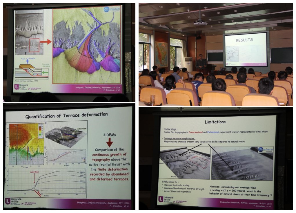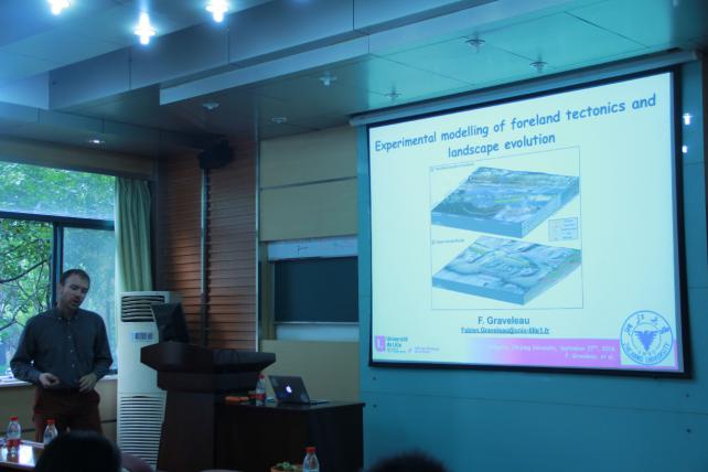 2016年9月27日,法国里尔大学副教授Fabien GRAVELEAU博士做客永利集团304am官方入口“求是理学论坛”,在玉泉校区第六教学楼203报告厅做了题为“Experimental modelling of foreland tectonics and landscape evolution”的学术报告。本次报告由永利集团304am官方入口饶刚研究员主持,地质、地球物理、遥感等专业师生,以及来自南京大学、中石油杭州地质研究院的相关研究人员参加了报告。