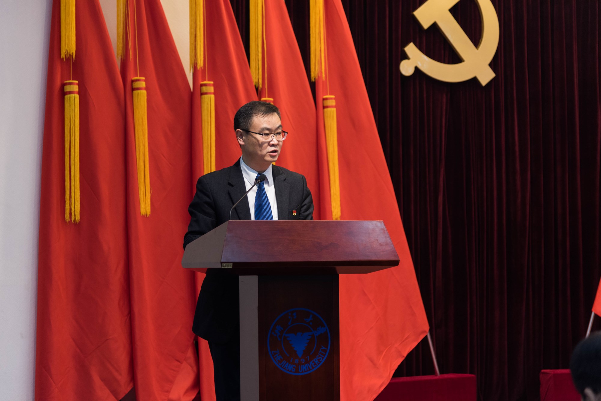 校党委副书记叶民对本次大会的召开表示祝贺并预祝大会圆满成功,并向向大会全体党员和学院全体师生员工致以诚挚的问候。他充分肯定了地科学院党委带领学院全体党员和师生员工在学院建设发展中取得的成绩,同时就本次换届选举和下一步的党建工作提出了三点希望和要求:一是希望参会的全体党员认真审议工作报告,认真负责地选举新一届学院党委委员、纪委委员和校党代会代表;二是希望新一届党委高举中国特色社会主义旗帜,紧密团结在以习近平同志为核心的党中央周围,带领全院党员深入学习贯彻十九大精神,充分发挥学院党委的政治核心和保证监督作用,进一步提高党建和思想政治工作科学化水平;三是要继续加强领导班子建设,加强党支部建设和党员队伍建设,围绕浙大“双一流”建设目标,加快建设世界一流地学学科。