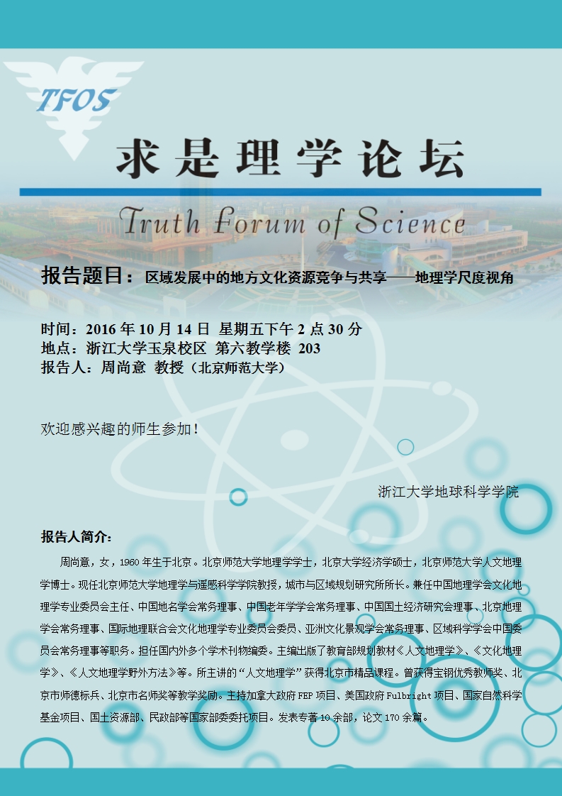 求是理学论坛――北京师范大学周尚意教授学术报告通知